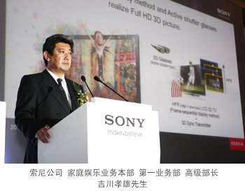 3D技术凸显索尼核心优势。在前不久美国拉斯维加斯举行的国际消费电子展上,3D立体影像成为当之无愧的绝对主角。作为全球视听技术领域的翘楚,索尼集团在CES展会上宣布将3D技术作为未来产品战略的重要组成部分,加速推动3D的家庭化进程。“在中国市场,和BD一样,3D将成为索尼差异化的法宝”,永田晴康先生表示。