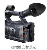 在记录媒体方面,AX2000E的技术革新给广大用户带了又一项惊喜:双记忆卡插槽交替录制使用户在拍摄婚礼、记录会议或者创作短片时可以免却频繁更换介质的困扰,长时间地以最大比特率录制AVCHD影片。记忆卡突然拍满了? 现在有了双插槽,只要事先准备好备用记忆卡,就不用再担心因现场手忙脚乱换卡而错过精彩的镜头了。
