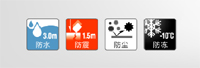 1 防水/防尘:本相机的防水/防尘性能相当于IEC60529 IP58。防水性能可在水深最深3米处工作约60分钟。
