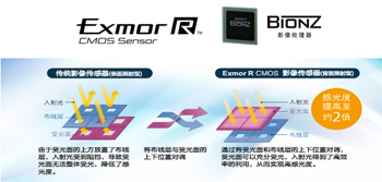 此次发布的春季新品,Exmor R CMOS影像传感器作为核心技术,可提供“高感光度,低噪点”的高品质拍摄体验,成为产品最重要的技术亮点。Exmor R CMOS影像传感器是索尼Cyber-shot引以为豪的技术,它采用背面照明技术,感光度约为传统CMOS影像传感器的2倍,噪点却仅50%,即使在夜景或背光等亮度不足的条件下拍摄,也能为您呈现清晰生动的照片或高画质低噪点的影像。