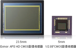 Exmor APS HD CMOS影像传感器的面积是1/2.88” CMOS 影像传感器的19.5倍