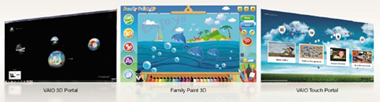 为了进一步扩展3D内容,全新L系列专门提供了2D/3D一键切换功能,只要轻轻触摸屏幕右下方的2D/3D切换键,便能迅速将普通的2D DVD或蓝光影片、高清视频及游戏一键切换成模拟3D立体画面效果,大大丰富了3D的生活体验。针对家庭用户的需要,L238一体机还新增了VAIO 3D Portal和VAIO Touch Portal娱乐平台,可分别快速访问多种3D应用软件和触控软件。其中,专门为家庭和儿童用户打造的Family Paint 3D绘图软件,点触间便可轻松绘制立体感十足的精彩图片,让全家人一起抢先体验3D立体世界的奇妙之处。