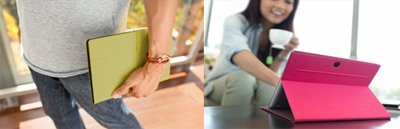 其中,机身保护套有皮质保护套、多彩保护套和带键盘保护套三种类别可选。人性化的设计让这三款保护套既可保护tablet避免屏幕表面刮伤,又可进行20度和70的固定,满足用户的不同使用需求。其中皮质保护套彰显档次,提供经典的黑白两色选择;多彩保护套则更显时尚,满足用户个性需求;而带键盘保护套则为用户带来双重体验,其内置键盘由高科技超细纤维制成,触感舒适。