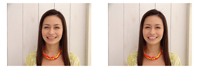 增强前 平滑皮肤,牙齿美白,放大双眼 增强后