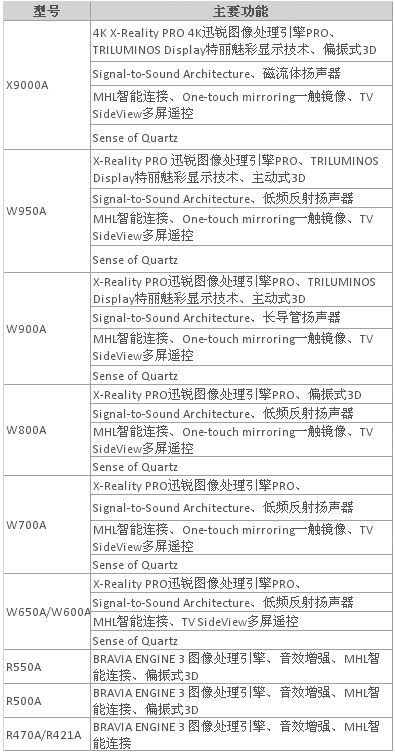 此外,本次发布会还发布了W950A、W900A、W800A、W700A、W650A/W600A的5个系列的W系高清液晶电视,全面应用了“X-Reality PRO”图像处理技术,让画面呈现更为清晰细腻。其中W950A和W900A两款高端型号还应用了“TRILUMINOS Display”(特丽魅彩显示技术),为消费者提供富有更饱满色彩的高端画质体验。