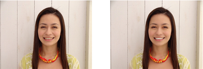 增强前 平滑皮肤,牙齿美白,放大双眼 增强后