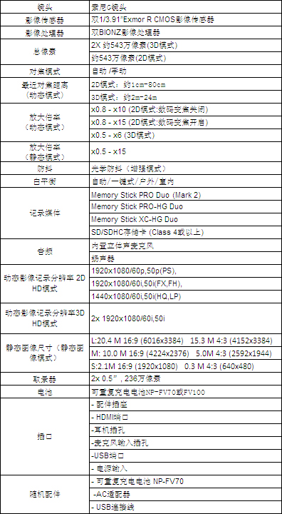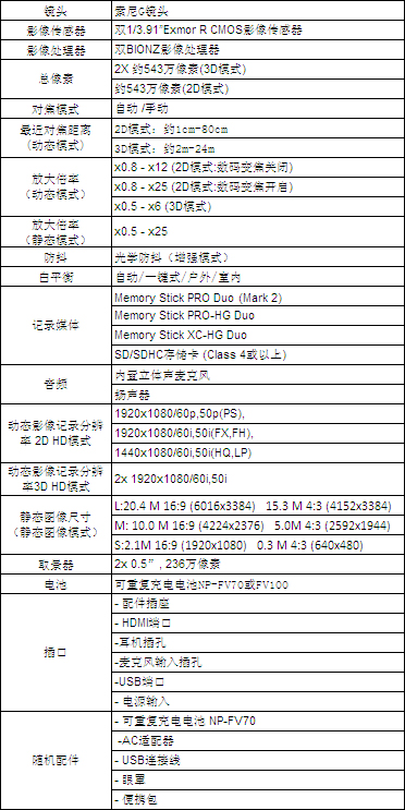 《索尼摄录望远镜DEV-50主要技术参数表》