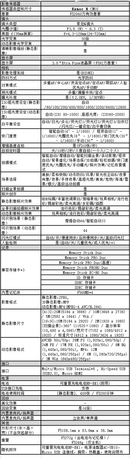索尼DSC-HX50采用了30倍变焦的索尼G镜头,G镜头作为索尼的高端镜头,为用户拍摄高质量照片提供了保证,24-720mm的等效焦距让用户的拍摄题材更加丰富多彩。DSC-HX50的高速自动对焦配合出色光学防抖功能,即使在长焦端拍摄也可以实现优秀的防抖效果并能准确捕捉影像。DSC-HX50配备了2040万有效像素的背照式Exmor R CMOS影像传感器,搭配高速BIONZ影像处理器,高达ISO12800的感光度设置,即使在昏暗的环境也可以拍摄出高画质的清晰影像,让用户外出旅行时不论白天或黑夜都可以随心拍摄。
