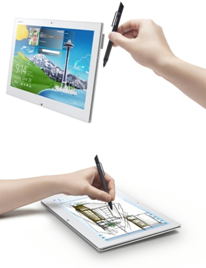 VAIO® Duo 13使用的数字触控笔,笔尖更为精细,能进行精准触控操作,即使很小的字也能流畅写出,带来更完善的书写体验。机身设计也为触控笔而优化,机身侧面加入一个可放置笔的插槽,使触控笔携带更方便;在合上机身的时候,拔出触控笔就可以让待机的Duo 13恢复工作状态,并直接进入Note Anytime for VAIO软件,带来更多便捷。