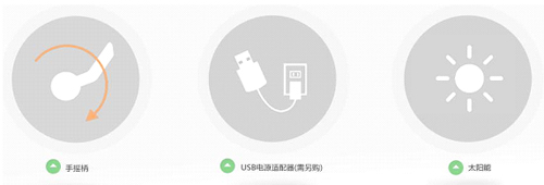 在某些紧急状况下,手机可能是与外界联系的唯一工具,当手机电量不足时, ICF-B88即可化身为简易充电宝,通过手机USB连接线为智能手机充电,保证手机电力持续供应。ICF-B88为智能手机提供了两种充电方式,电池充电和手摇充电。充满电的内置电池为智能手机充电,可以让其通话约16分钟;使用两节全新的AA尺寸的干电池,可以让手机通话约16分钟。若使用手摇充电,以每秒2转或以上的转速充电时,充电1分钟,即可获得约40秒的通话时间。