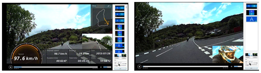 PMH软件可在视频中同步叠加GPS信息,包括即时速度、距离和移动轨迹等信息均可与画面同步显示、一目了然,使骑行或越野自驾的影像,信息更丰富、更带感;如果有多台“酷拍”摄像机从不同角度同时拍摄,PMH还可将两段视频编辑生成一个动态影像文件,通过选择左右分屏、上下分屏或是画中画等不同排列方式,在一个视窗内全方位展示运动的精彩。新升级的PMH软件,还可对视频进行旋转,将横向录制画面调转至正视的浏览角度。