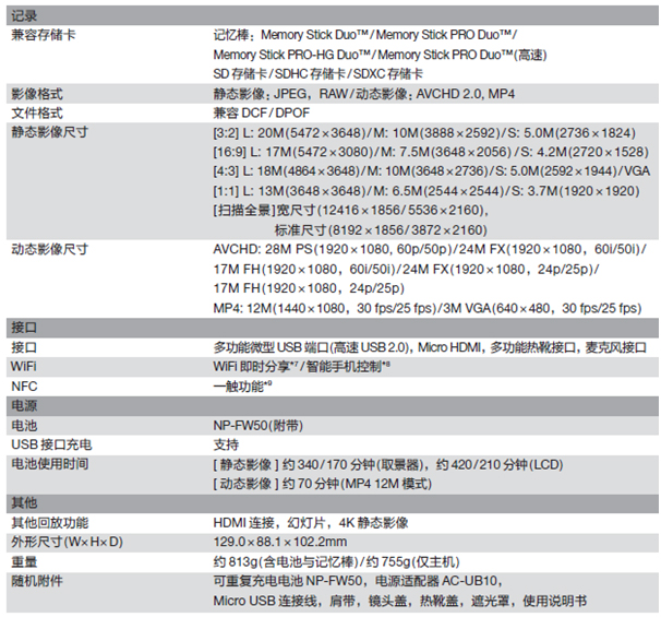 索尼黑卡™RX10同样注重分享功能,内置NFC(近场通信)技术与Wi-Fi。已安装PlayMemories Mobile软件的 智能手机/平板电脑通过NFC功能实现Wi-Fi连接,进行一触™遥控和一触™分享。如果您的智能手机/平板电脑不支持NFC技术,也可通过输入密码直接连接至RX10的Wi-Fi实现智能手机控制进行即时分享。大大增加用户的拍摄乐趣。