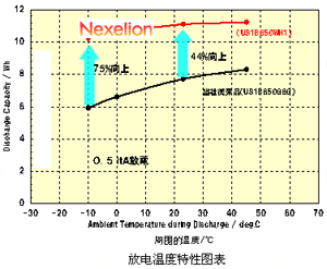 新产品在低温环境下(-10度~0度)也可以保持高容量。与索尼之前的产品(同样尺寸的圆柱形2.2Ah产品)相比,低温环境放电容量提升了75%。