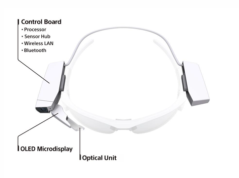 在这款显示器上,索尼使其尺寸更加紧凑,重量更加轻盈,以实现与眼镜的成功连接。该设备配置了高分辨率彩色OLED微型显示器、可显示高清图像的微型光学元件以及采用高密度包装技术以实现堪比智能手机的运算能力的微型控制板。