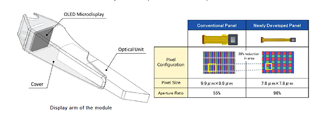 该模组配备了一枚0.23英寸的高分辨率彩色OLED微型显示器,这也是世界上最小的显示器之一,这都归功于索尼独特的OLED和半导体硅驱动技术。它拥有640*400像素的分辨率,高于10,000:1的分辨率以及涵盖100%sRGB的宽色域,能很好的还原深黑色背景,带来高质量的画面表现。