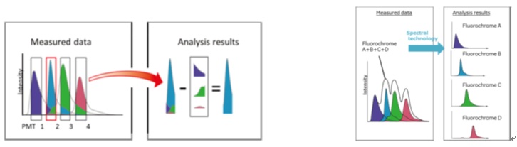 因为个体样本拥有不同的自发荧光水平以及其它因素,对大量样本进行测量会因为不一致的荧光背景变得很复杂,这使通过数量去比较样本难以实现。索尼开发的光谱分析技术,通过将自发荧光识别为一种颜色,从而与其它信号区分开来,这就解决了上述问题并令分析更为可靠。