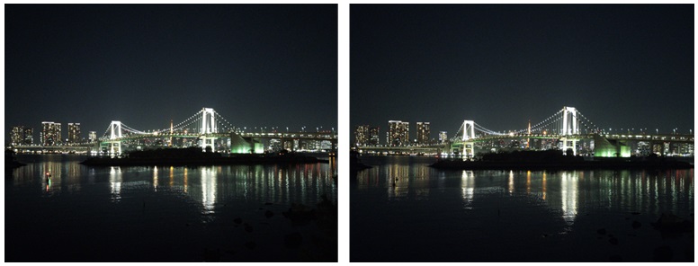 左图:IMX230拍摄效果示意(1.12μm像素单元) 右图:IMX318拍摄效果示意(1.0μm像素单元)