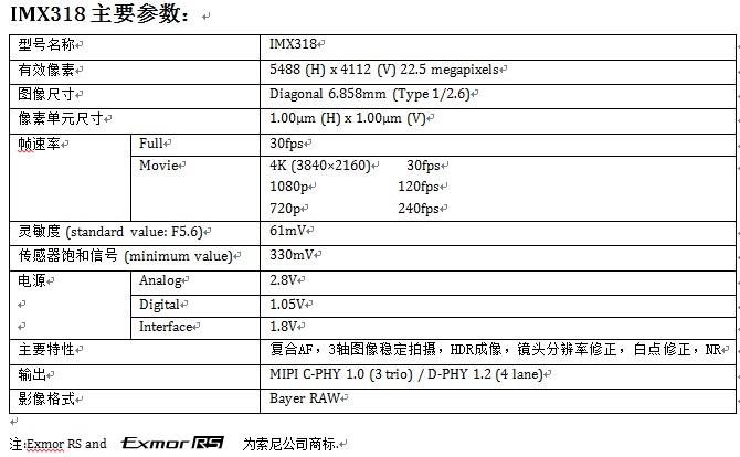 IMX318 主要特性: