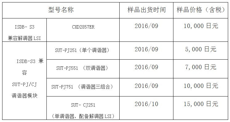 (7月27日,日本东京)索尼公司今天发布符合ISDB-S3(第三代卫星数字广播综合服务标准)下一代4K/8K卫星数字广播标准的、业内首款解调器LSI(大规模集成电路)和调谐器模块。索尼将在9月开始出货样品。