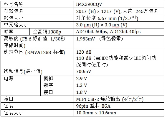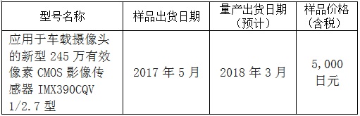 (2017年04月12日,东京,日本)——索尼公司(下称索尼)宣布将对用于车载摄像头的新型245万有效像素CMOS影像传感器(IMX390CQV 1/2.7型)进行商业化。索尼将于2017年5月开始出货样品。