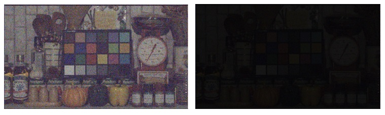 0.1勒克斯的光照条件下影像对比:(左)IMX390CQV;(右)视觉影像