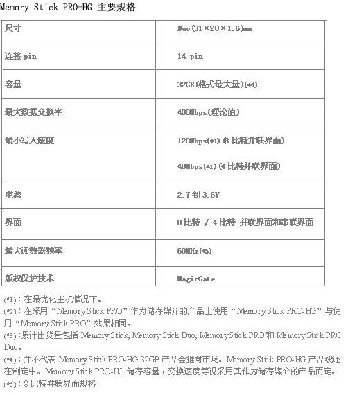 2007年1月起,采用“Memory Stick PRO-HG”作为储存媒介的产品将自2007年1月起获得生产许可。